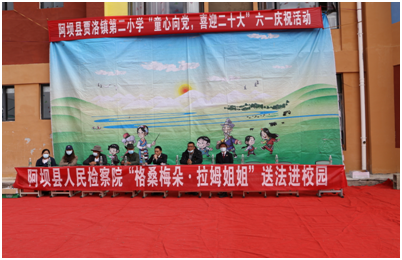 为扎实推进乡村振兴,助力乡村教育,关爱农牧区单亲贫困儿童健康成长。2022年6月1日,在第七十二个国际“六一儿童节”,阿坝县人民检察院组织帮扶干警到贾洛镇班玛拉塘村第二小学开展法治进校园暨关心关爱活动,为帮扶村的孩子们上了一堂生动的法治教育课。